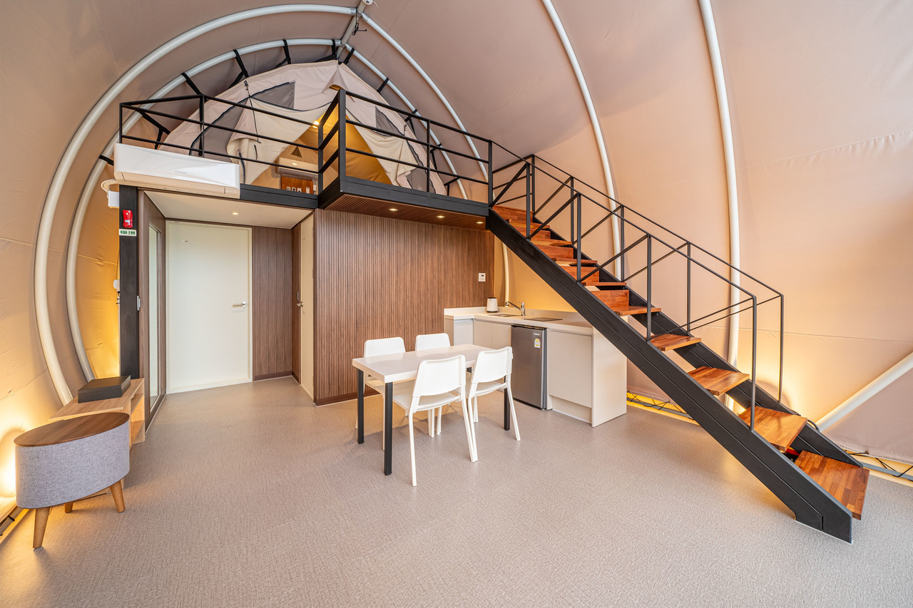 복층으로 펼쳐진 넓은 텐트에서 평범한 일상을 벗어나 특별한 추억을 만들어보세요.
