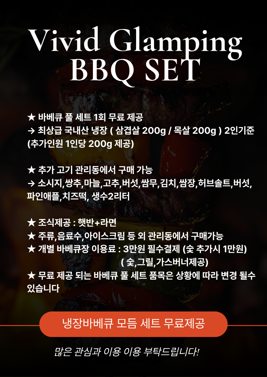 비비드글램핑에서 자연이 선사하는 가장 화려한 휴식을 경험하세요.